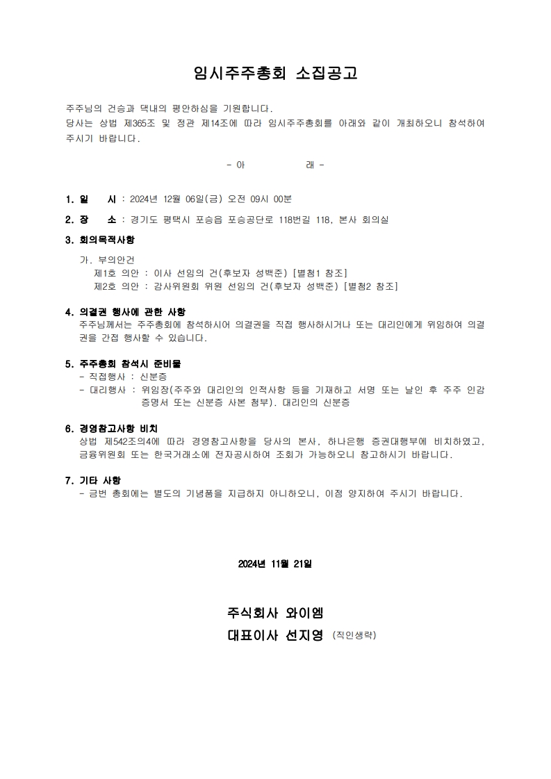 임시주주총회 소집공고