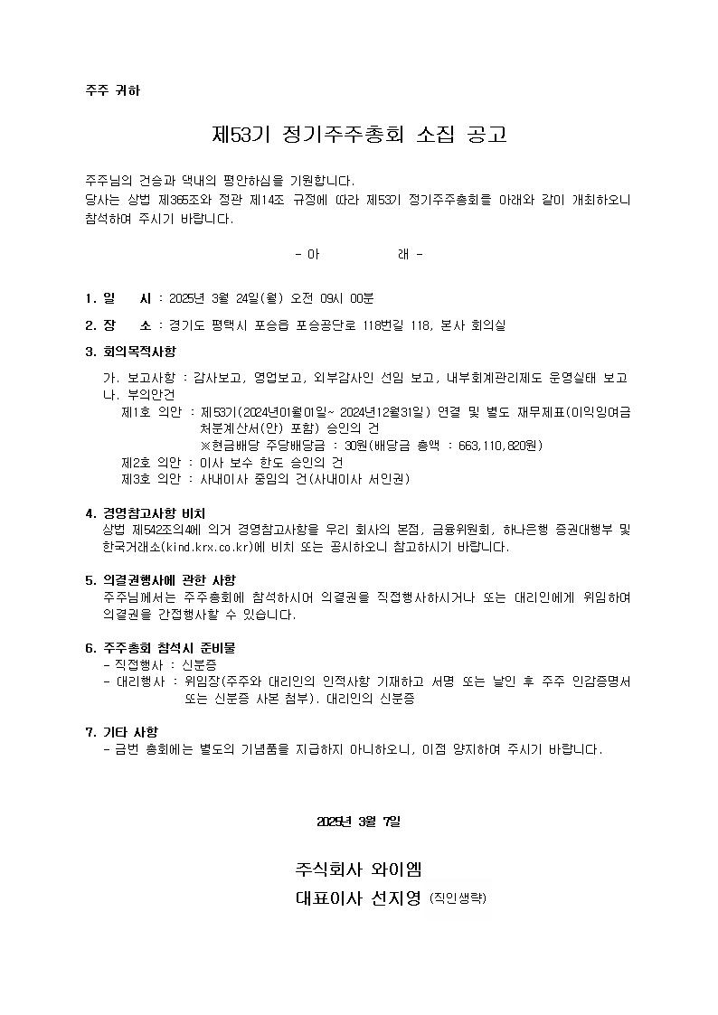 제53기 정기주주총회 소집 공고