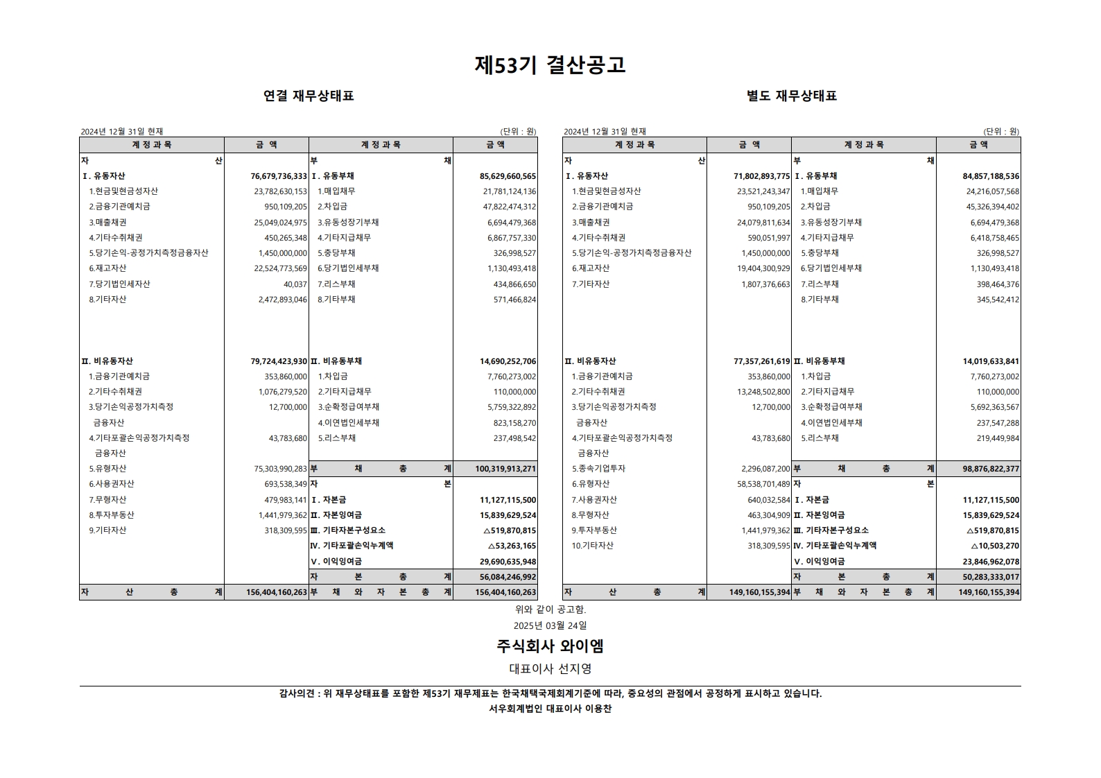 제53기 결산공고
