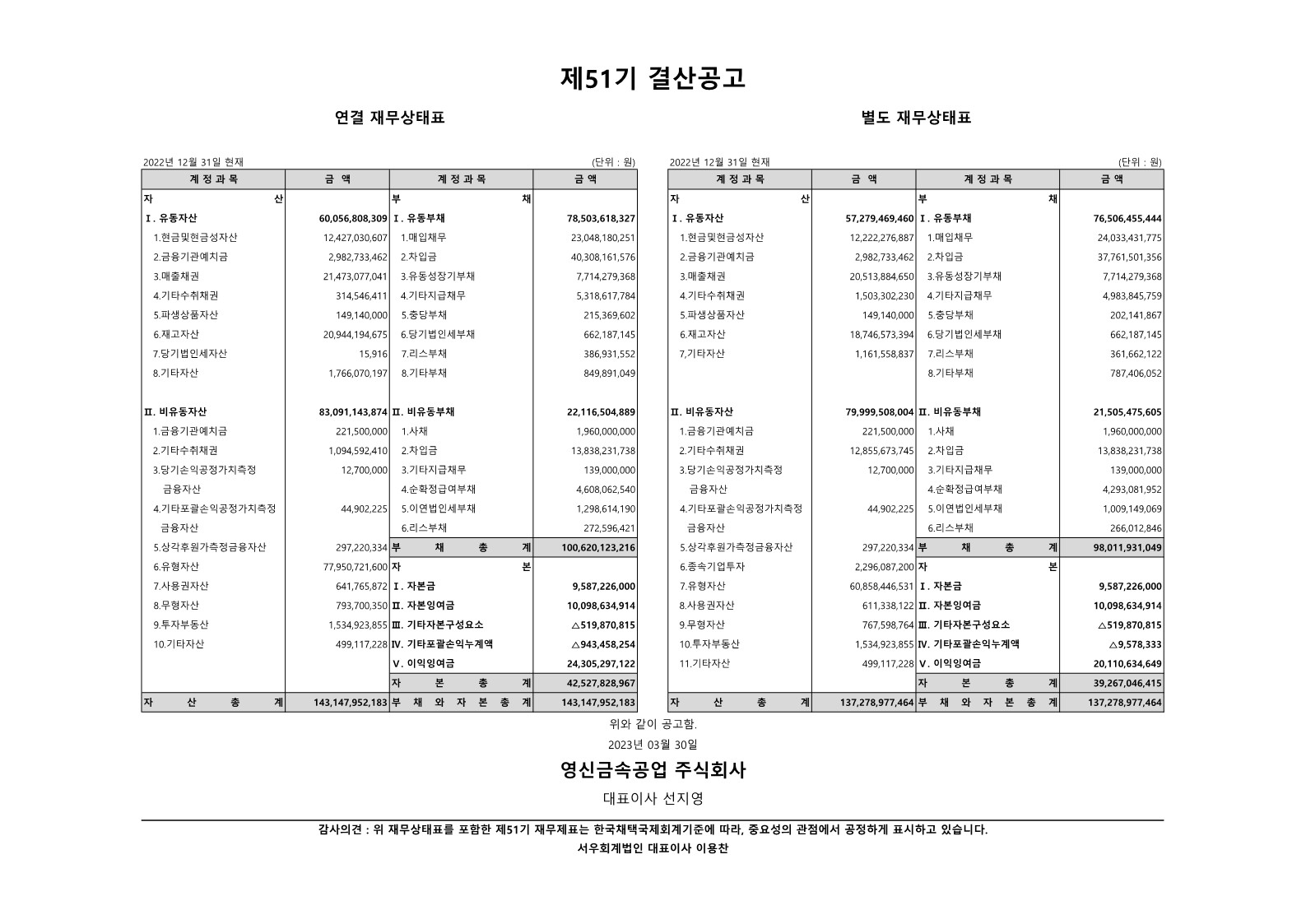제51기 결산공고