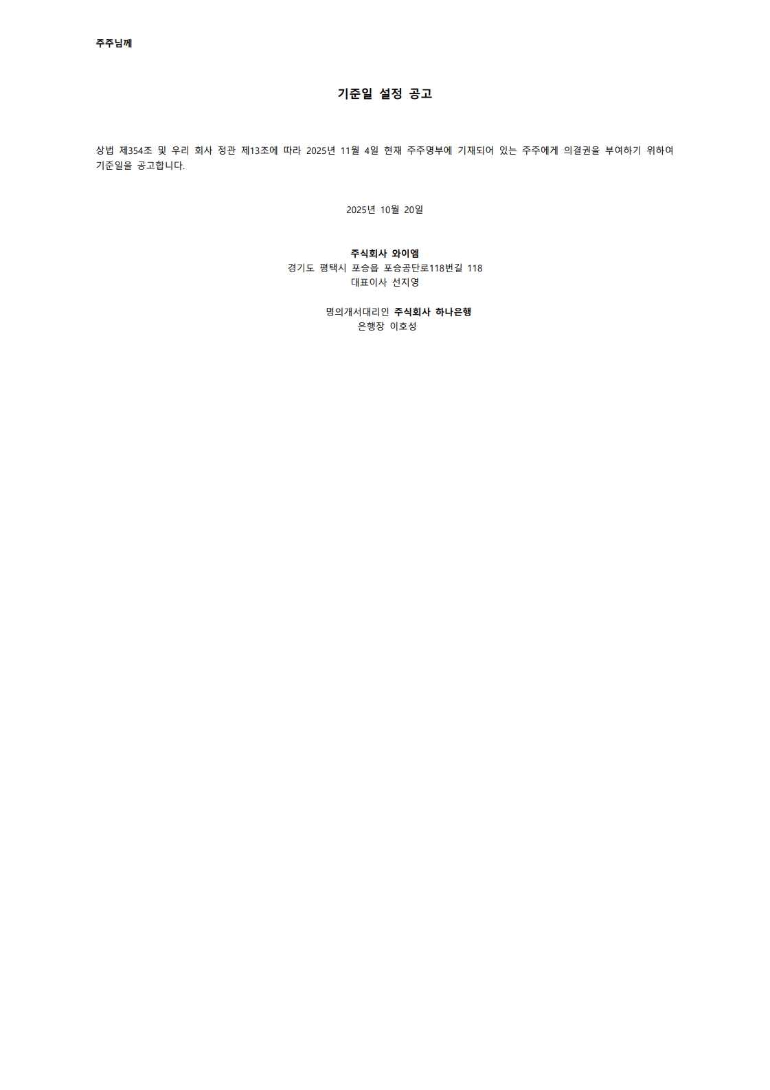 임시주주총회(2025년 11월 28일 개최 예정) 기준일 설정 공고