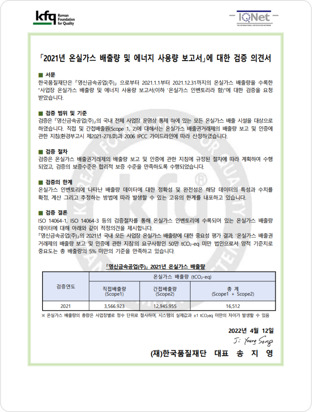 Third-party verification opinion