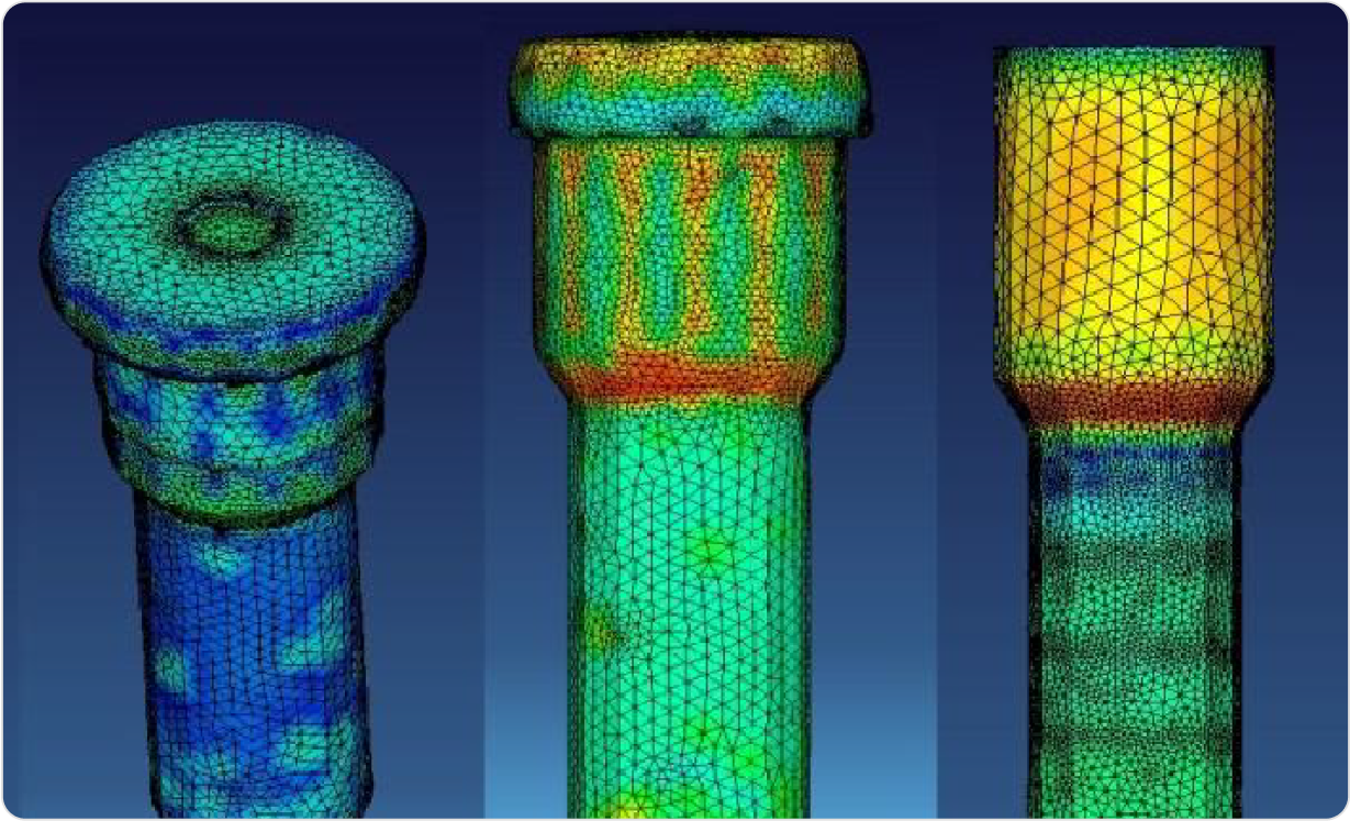 CAE finite element analysis of thousands of cold-forged products and preliminary verification of the simulation results.