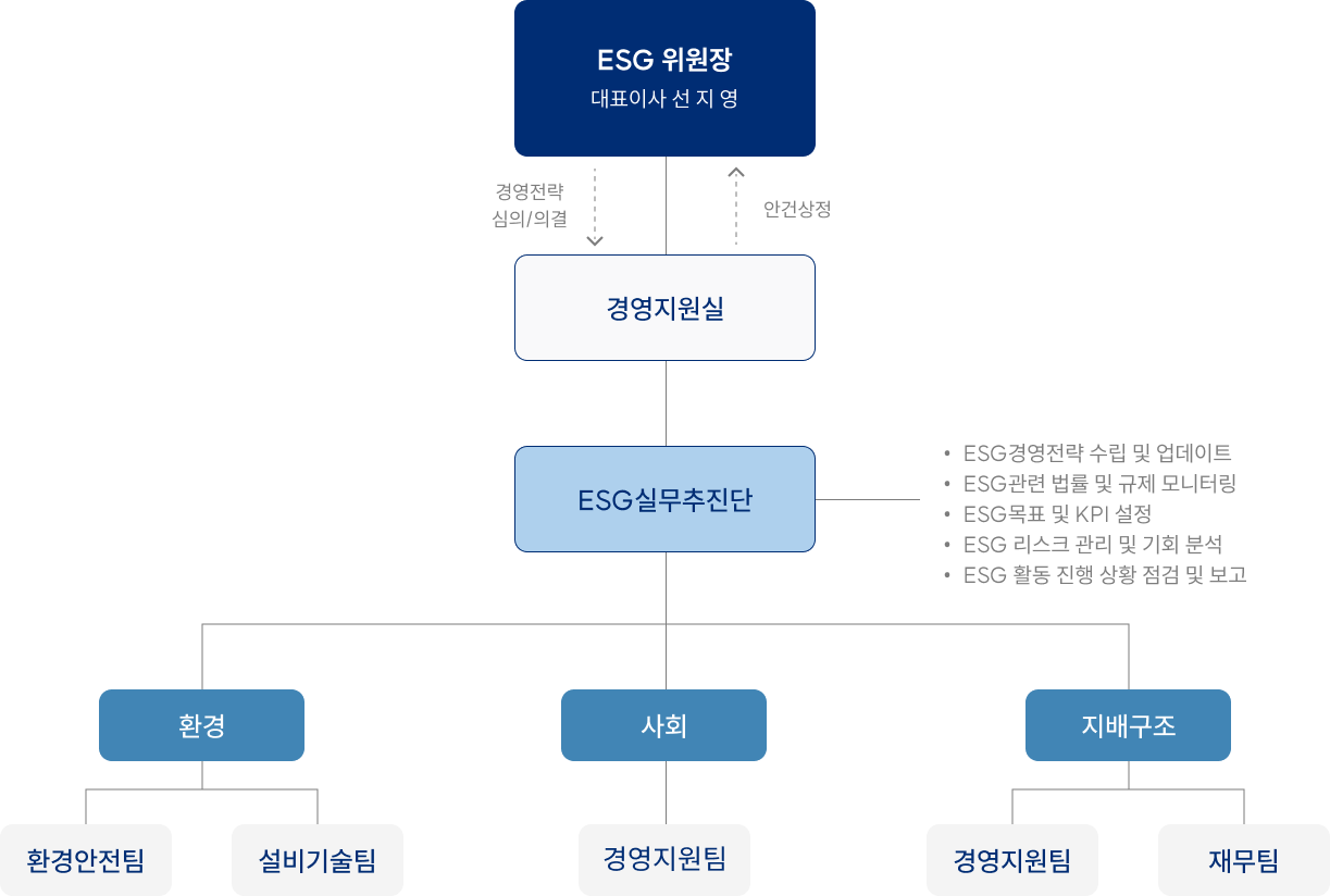 공정하고 책임 있는 의사결정 체계를 구축하고, 준법경영 및 내부 통제시스템을 강화하여 기업 투명성을 강화합니다.
