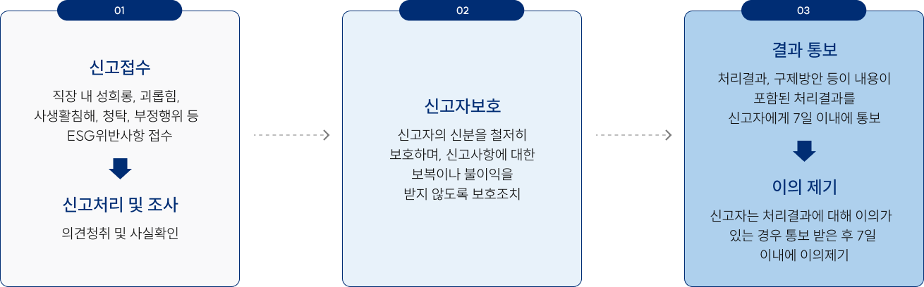 이 절차는 모든 신고자에게 안전하고 공정한 환경을 보장하며, 보복이나 불이익 없이 문제가 해결될 수 있도록 설계되었습니다.